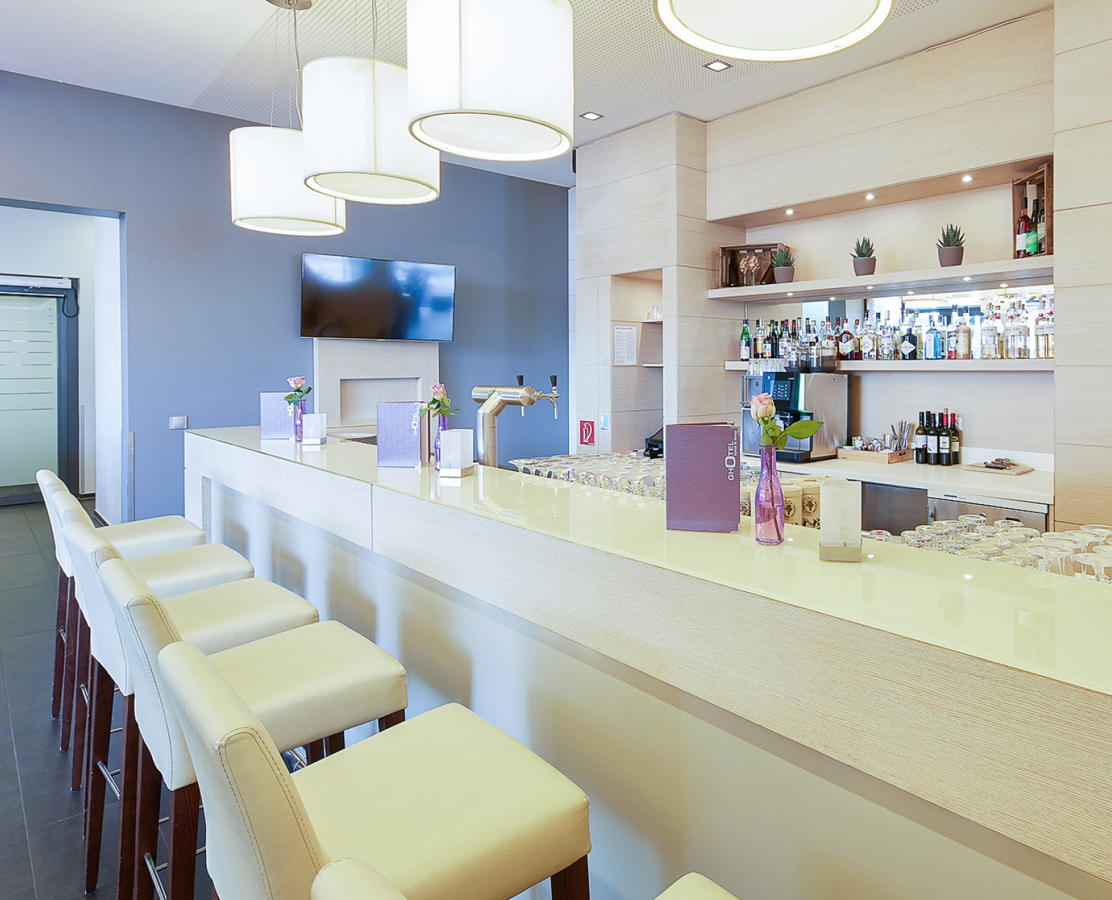 Unsere gut sortierte, stylische Hotelbar hält das ganze Jahr über zum gepflegten Tagesausklang kühle Getränke für Sie bereit. Die Hotelmitarbeiter sind rund um die Uhr für Sie da.